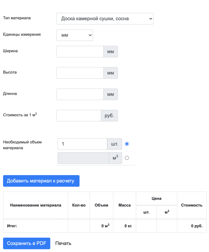 Калькулятор пиломатериалов онлайн