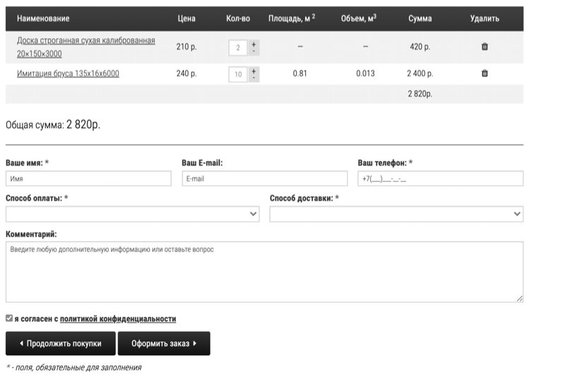 Главная Каталог пиломатериалов (см. файл таблицу) + террасная доска + палубная доска Прайс-лист Покраска (можно покрасить необходимый пиломатериал, например для отделки, в специальной камере, что является более предпочтительным методом, чем покраска после монтажа) Доставка и оплата Поддоны (страница о скупке поддонов 800*1200, 1000*1200, 1000*1000, 1100*1100, 1100*1300) Акции (уцененные позиции из каталога) Калькулятор (Можно ввести кол-во разного пиломатериала, чтобы посчитать площадь и объём, и наоборот) Корзина (оформление заявки) О компании (тест, фото, видео)